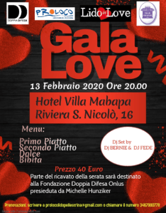 Gli eventi prenderanno il via giovedì 13 febbraio con il Gran Gala in Love al Centro di Soggiorno Morosini. Venerdì 14 febbraio presenta un ricchissimo programma per San Valentino che vede la partecipazione di Cafè24 Television e Radio Stereo Città.