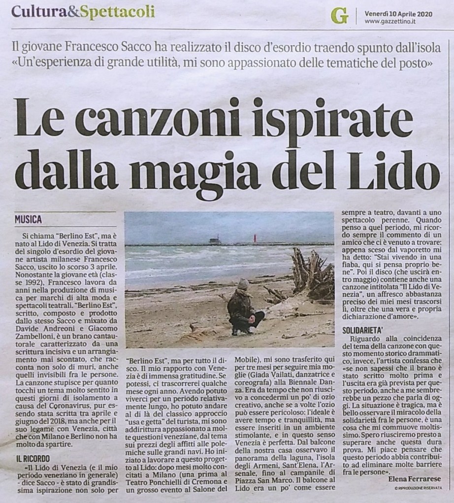 Articolo di Elena Ferrarese, IL GAZZETTINO del 10 aprile 2020.