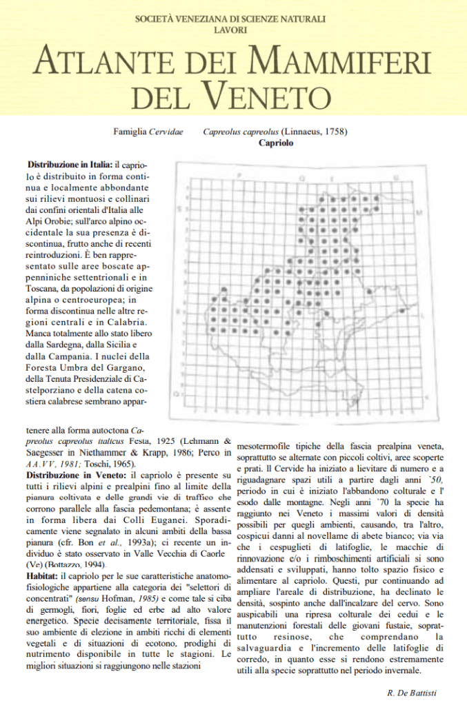 Suggeriamo approfondimenti nell’Atlante dei mammiferi del Veneto a cura della SOCIETÀ VENEZIANA DI SCIENZE NATURALI.