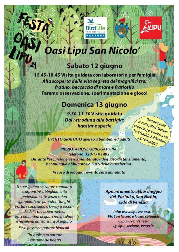 Weekend di festa all’Oasi San Nicolò del Lido di Venezia nell’ambito del programma nazionale LIPU. Sabato 13 e domenica 14 giugno 2021, due giorni immersi nella natura con laboratori per le famiglie e visite guidate.