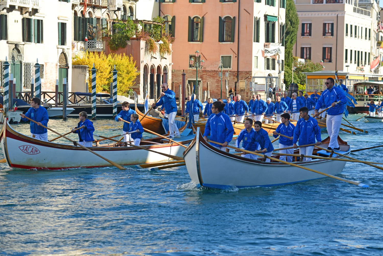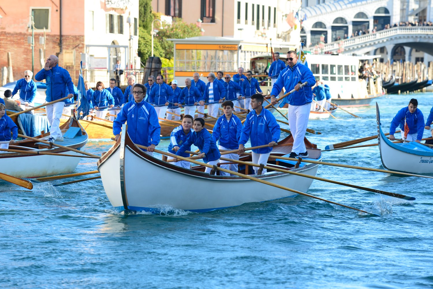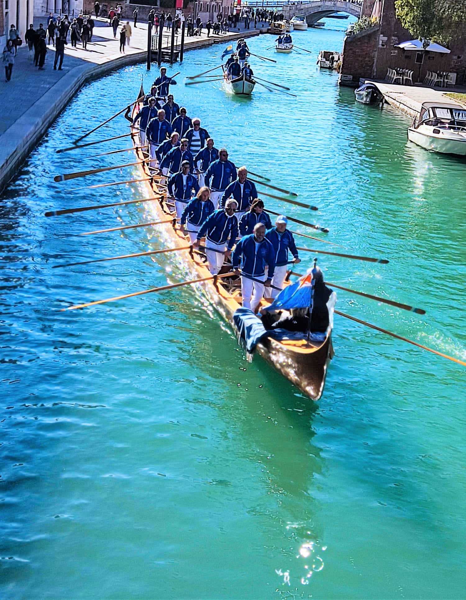 Che meraviglia vedere il corteo di barche della ultra centenaria Società (leggi qui tutta la storia) che sfila in Canal Grande assieme ai suoi giovani atleti di voga veneta.