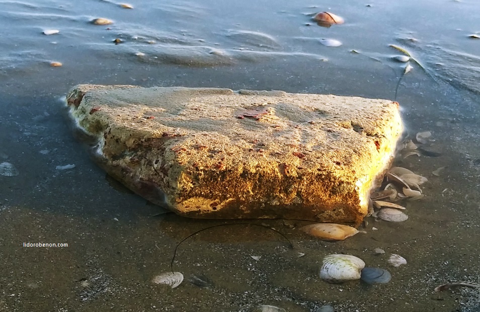 Riportiamo qui alcune foto di mattoni e cocci antichi restituiti dal mare alla spiaggia del Lido di Venezia. In alcune immagini si vedono laterizi ancora incastrati nella barriera di scogli davanti al Pachuka (link al reportage gennaio 2021).