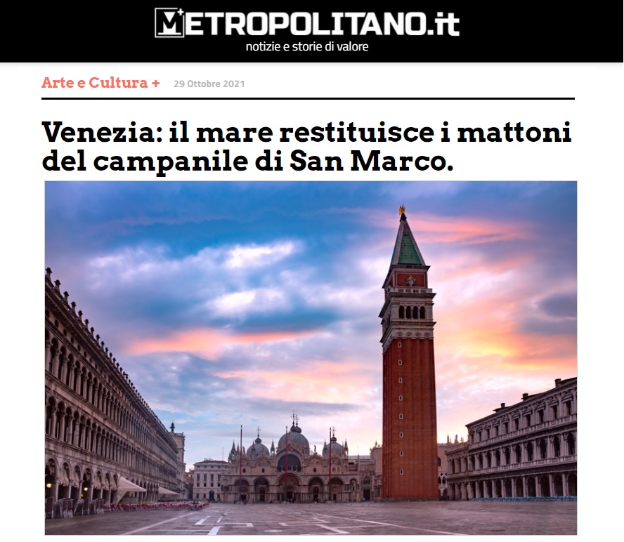IL MARE – L’importanza del mare è fondamentale perché riceve e riconsegna i materiali del Campanile di San Marco. Il mare sarà celebrato in due date proprio all’inizio del Decennio delle Scienze del Mare per lo Sviluppo Sostenibile. La prima data, lunedì 11 aprile 2022, ci metterà in rete a livello nazionale con la Giornata del Mare e della cultura marinara. La seconda data è venerdì 20 maggio 2022 Giornata Europea del Mare.