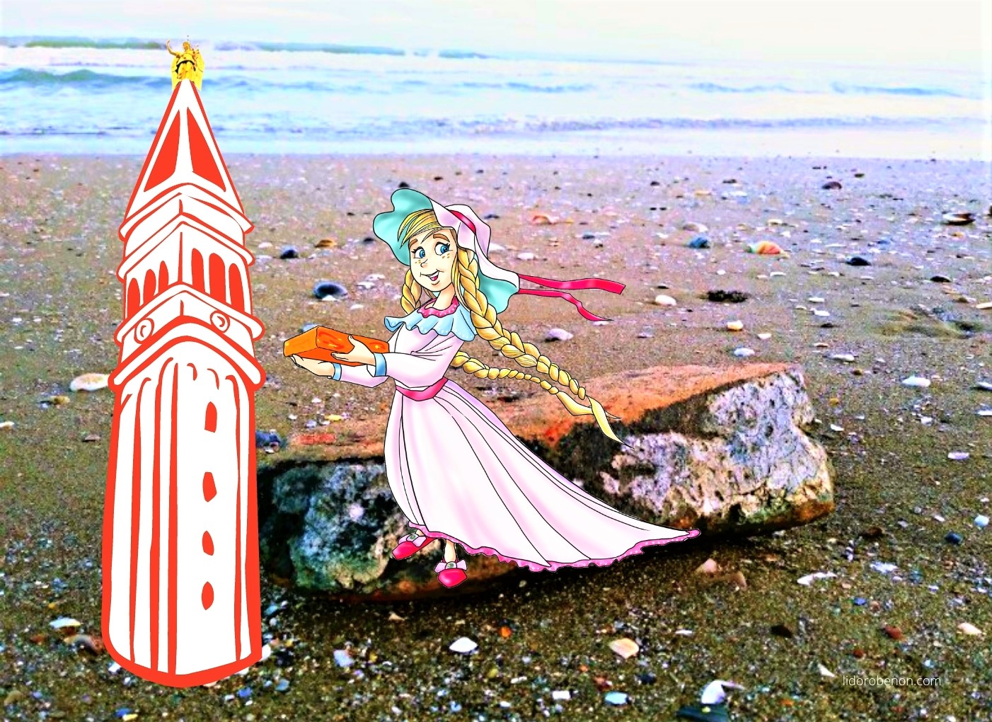 TOCHETIN – La bambina Gigeta è la mascotte del progetto disegnata da Valerio Held. Nel 1902, dopo aver gettato in mare il primo degli oltre 1.200.000 mattoni delle macerie, Gigeta si era tenuta in tasca un “tochetin”, cioè un pezzettino del Campanile. Era figlia del pittore Angelo Alessandri, amico di Giacomo Boni e discepolo di John Ruskin.