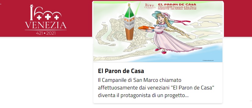 ANNIVERSARI – Il progetto El Paron de Casa è impostato su tre importanti anniversari: 1600 anni (421-2021) dalla Fondazione di Venezia; 120 anni del crollo del Campanile di San Marco (1902-2022); 110 anni (1912-2022) dall’inaugurazione del Campanile riedificato.