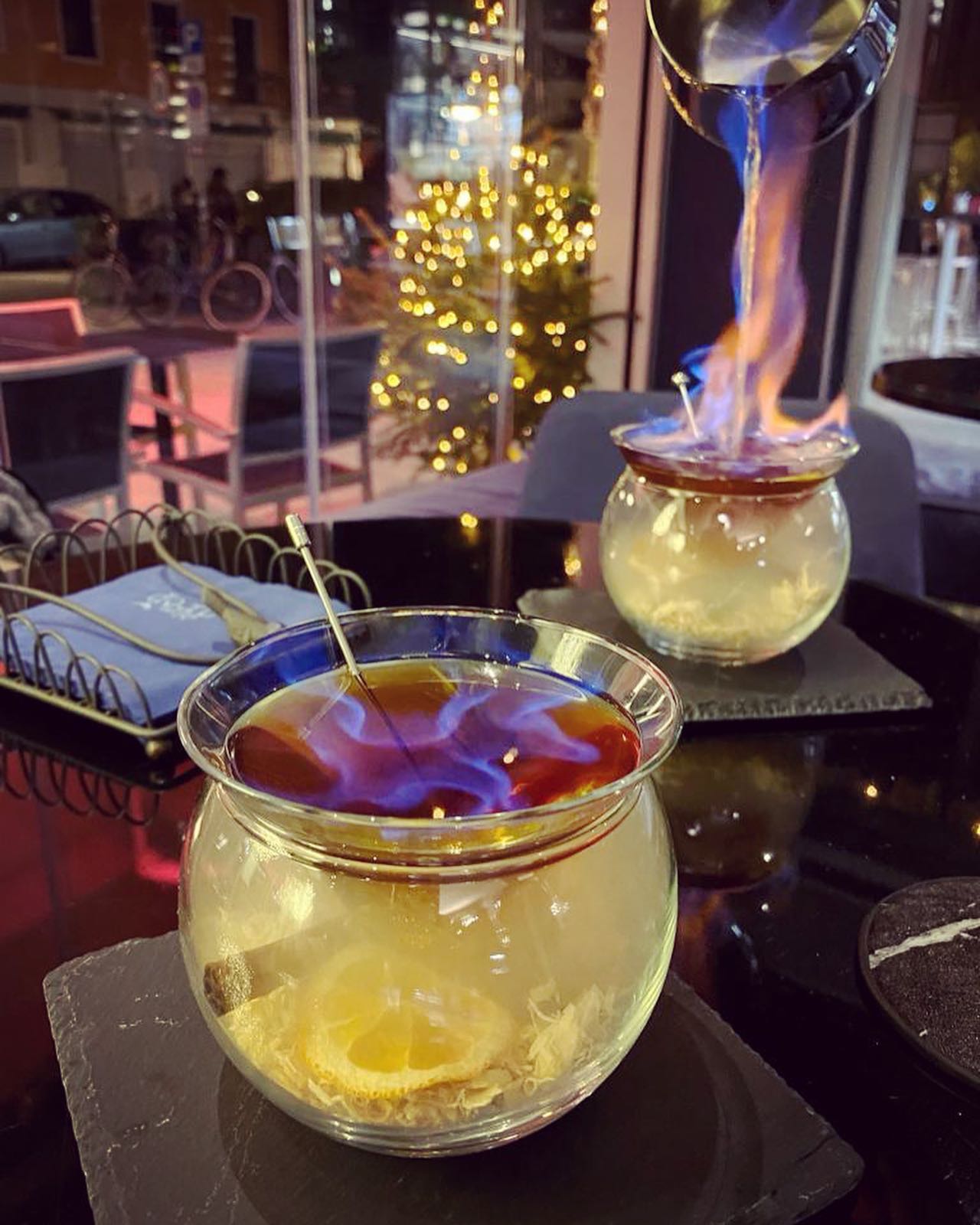 Consigliato provare ABOUT SUN (SET) by Oleg Dobereanschi e Jonathan Bortoletti, ovvero il drink ispirato ai bellissimi tramonti che si possono ammirare al Lido di Venezia. L’essenza di bergamotto è la prima a colpire i sensi, si incontrano poi il frutto della passione, la dolcezza del rum e le note balsamiche dello sciroppo di camomilla homemade, il tutto equilibrato dall’acidità del lime e dalle note aromatiche del bitter (10€).