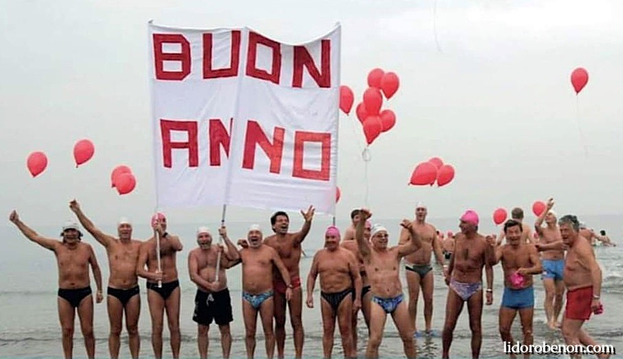 In attesa della 44esima edizione per salutare il nuovo anno, 1 gennaio 2025 ore 12:00 alla spiaggia Blue Moon del Lido, un folto gruppo di ibernisti e della Protezione Civile si è riunito all’Hotel Belvedere all’evento organizzato da Lido Oro Benon.